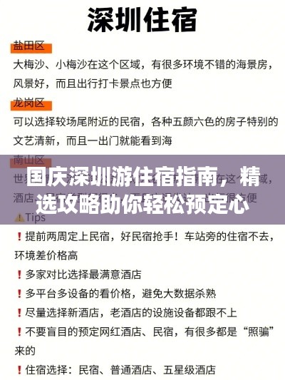 随着国庆黄金周的临近,许多人都计划在这个秋高气爽的季节里出门旅游,而深圳作为中国的经济特区,其独特的城市魅力与丰富的旅游资源吸引了无数游客,本文将为你提供一份详尽的国庆到深圳旅游住宿攻略,帮助你更好地规划行程,享受美好的旅行。